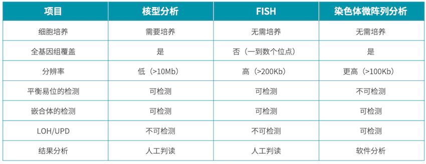 临床常用细胞遗传学诊断技术比较