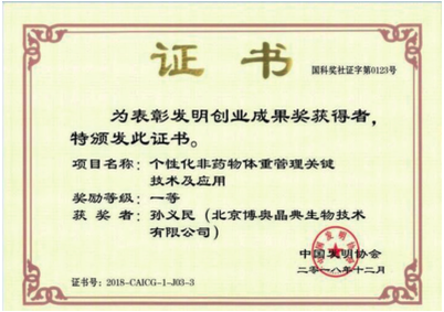 《个性化非药物体重管理关键技术及应用》荣获“2018 年发明创业成果奖”一等奖