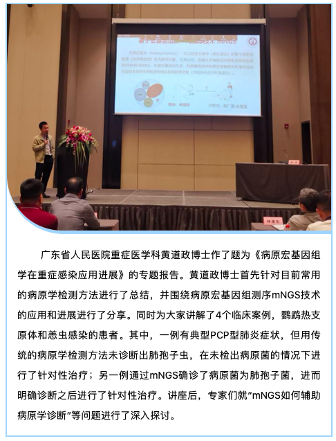 日前,福建省重症医学培训会——中国重症医学多学科精髓(MCCRC)培训班在福州召开。本次培训班邀请了省内外知名专家围绕重症医学领域新技术的开展等内容进行了专题报告,其中,广东省人民医院重症医学科黄道政博士及k8凯发国际产品总监刘莹莹博士受邀出席,并作了题为“病原宏基因组学在重症感染应用进展”和“病原宏基因组学报告解读”的专题报告,报告受到福建省医学会重症医学分会主任委员、福建医科大学附属第一医院ICU主任林建东教授的支持与点评。