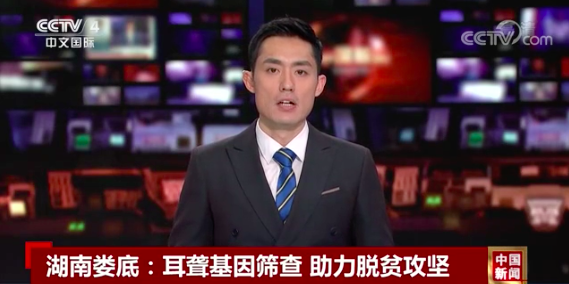 日前,CCTV-4(中文国际频道)《中国新闻》栏目以《湖南娄底:耳聋基因筛查 助力脱贫攻坚》为题,报道k8凯发国际遗传性耳聋基因筛查项目在湖南省娄底市的召开情况。同期,中央广播电视总台旗下新媒体平台“央视频”也就此项目进行跟踪报道。