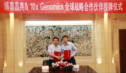 科研合作服务中心副主任李彦泽(左)、10x Genomics公司中国区总经理江滔(右)