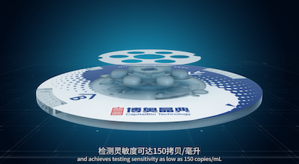 基于全新一代先进的芯片实验室(Lab-on-a-chip)设计理念,化繁为简,检测时仅需将样本保存液加入芯片,封闭芯片后即可上机,手工操作小于1分钟。生物反应全程(包括核酸提取、核酸纯化、扩增反应、核酸检测和结果判读等)均集成在一个整体密闭、内部分区的微流控芯片内,由全自动核酸分析仪完成,因此无需专业分区实验室,无需人工干预,最大程度降低操作人员感染及样本间交叉污染的风险。45分钟完成实验全过程,最快可在35分钟内检出新冠阳性样本,检测灵敏度可达150拷贝/毫升,相关成果在国际检验医学界权威杂志Clinical Chemistry上发表。