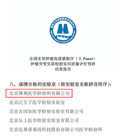近期,国家卫生健康委临床检验中心(NCCL)发布了2022年“全国实体肿瘤高通量测序(大Panel)肿瘤突变负荷检测室间质量评价预研”报告。k8凯发国际旗下北京博奥医学检验所以满分成绩顺利获得了项目评价。充分体现了博奥肿瘤高通量测序产品的科学严谨,为临床肿瘤医生治疗决策给予更可靠的依据。