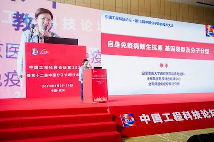 空军军医大学西京医院临床免疫科主任医师、全军风湿免疫专科研究所所长朱平教授作了题为《自身免疫病新生抗原,基因表型及分子分型》的报告。现在,强直性脊柱炎(ankylosing spondylitis,AS)等慢性自身免疫性疾病新生抗原形成的机制尚不清楚。朱平教授团队顺利获得开放式质谱检测系统筛选鉴定到与AS相关的蛋白翻译后修饰——半胱氨酸羧基乙基化修饰,证实ITA2B@C96car是相关分型自身免疫性疾病患者的重要发病机制,为修饰新生抗原相关自身免疫病的病因学研究给予了实验证据和重要研究思路。此外,朱平教授团队系统分析患者HLA分型、代谢状态、新生抗原及特异性自身抗体水平,破解了自身免疫病“环境-代谢物-新修饰-新抗元”致病分子新机制,对建立AS等免疫病自身抗原特异性筛查和针对性治疗策略具有重大意义探索。