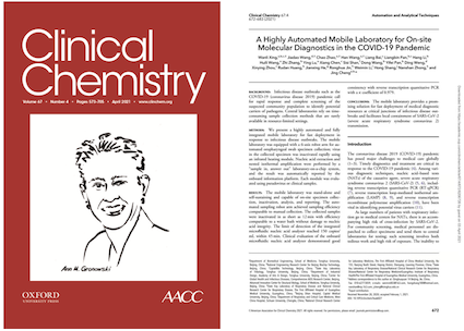 “全集成核酸快速检测芯片系统的研发及临床应用”项目实现了多种需求场景下的“样本进-结果出”式高灵敏快速检测。基于全新一代先进的芯片实验室(Lab-on-a-chip)设计理念,化繁为简,检测时仅需将样本保存液加入芯片,封闭芯片后即可上机,手工操作小于1分钟。生物反应全程(包括核酸提取、核酸纯化、扩增反应、核酸检测和结果判读等)均集成在一个整体密闭、内部分区的微流控芯片内,由全自动核酸分析仪完成,因此无需专业分区实验室,无需人工干预,最大程度降低操作人员感染及样本间交叉污染的风险。45分钟完成实验全过程,最快35分钟报告新冠阳性结果,检测灵敏度达到150拷贝/毫升,相关成果在国际检验医学界权威杂志Clinical Chemistry上发表。