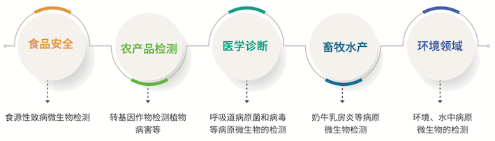 以开发的呼吸道病原菌检测试剂盒为例,特异性实验表明:所检测的 13 种病原菌与 28 种其它常见呼吸道细菌或其亲缘关系较近的细菌无交叉反应。