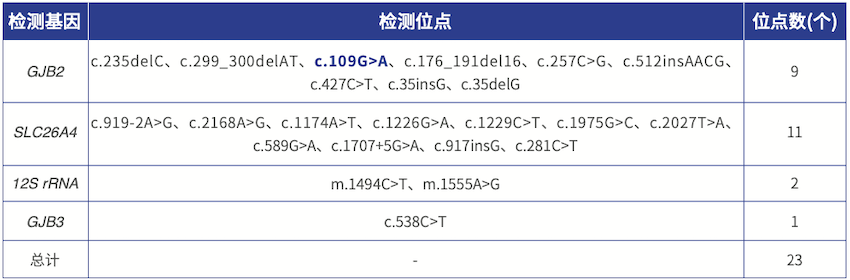 二十三项遗传性耳聋相关基因检测试剂盒(微流控芯片法)采用微流控芯片技术结合竞争性等位基因特异性扩增技术对 耳聋相关4个基因23种突变形式进行检测。国内首个纳入GJB2 C.109G>A位点的获证试剂盒。